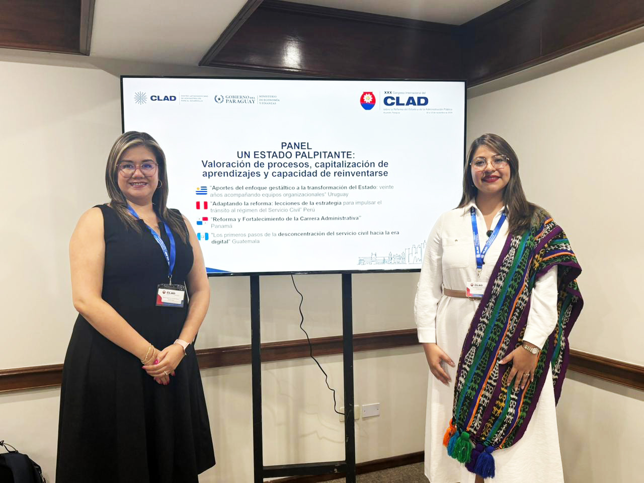 En uno de los paneles, la Directora de Carrera Administrativa expuso el tema “Los primeros pasos de la desconcentración del servicio civil en Guatemala, hacia la era digital”, como parte de un espacio de reflexión sobre la gestión del talento humano y la profesionalización del servicio civil. Su intervención permitió exponer los avances del país en la adopción de herramientas tecnológicas y en la transformación de los procesos vinculados al empleo público.